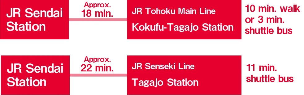 - The bus runs a loop between three locations every 15 minutes from 9:30 to 17:00: JR Senseki Line Tagajo Station South Exit, JR Tohoku Main Line Kokufu-Tagajo Station North Exit, and Tagajo Ruins Parking Lot (Tagajo Ruins Ayame Park).
